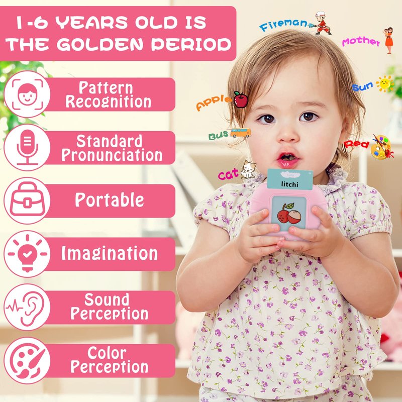 - Interesting Flash Cards for Toddlers: The talking flash cards have 112 double-sided cards containing 224 visual words, for example, animals, daily necessities, people, colors, vehicles, food, vegetables, nature, etc. These card early education device can greatly stimulate children's imagination, allowing them to expand their horizons while having fun. Great learning toys for 2 year olds.