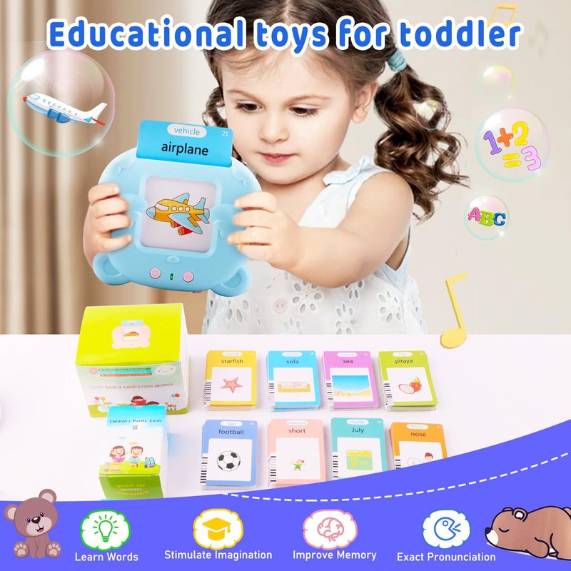 - ✿【Easy To Operate】Insert the card to the flash cards educational toys, the reader will read the words and make a simulated sound automatically,Press the repeat button to repeat the pronunciation and sound effect,This montessori toy keeps kids away from mobile phone and tablets, reduce screen time effectively.