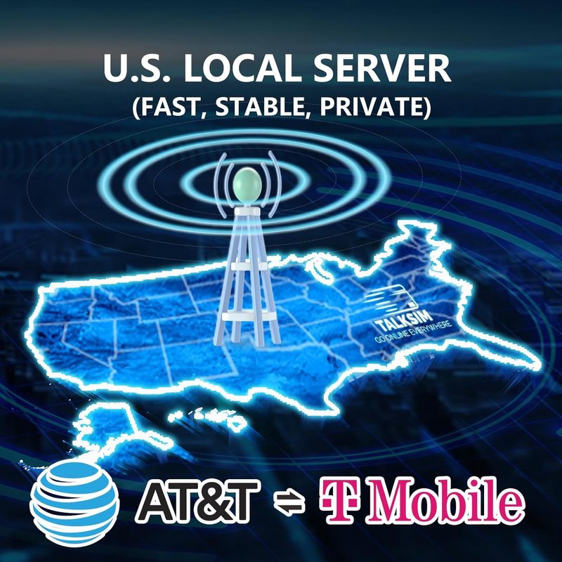 - 4G U.S. SERVERS (AUTOMATIC SWITCHING BETWEEN AT&T AND T-MOBILE):TALKSIM sources its signal from the U.S. to ensure stability and security. It automatically compares signals from T-Mobile and AT&T, selecting the best local signal for improved network reliability. This feature further guarantees stable internet access for your usage