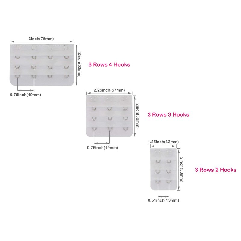 - Package Included: 3pcs 3 Rows x bra extender 2 hook, 3pcs 3 Rows x Bra Extenders 3 Hooks, 3pcs 3 Rows x Bra Extender 4 Hook.(Black, White, Beige)