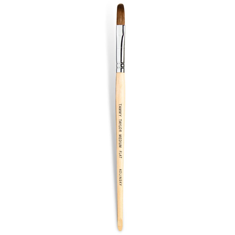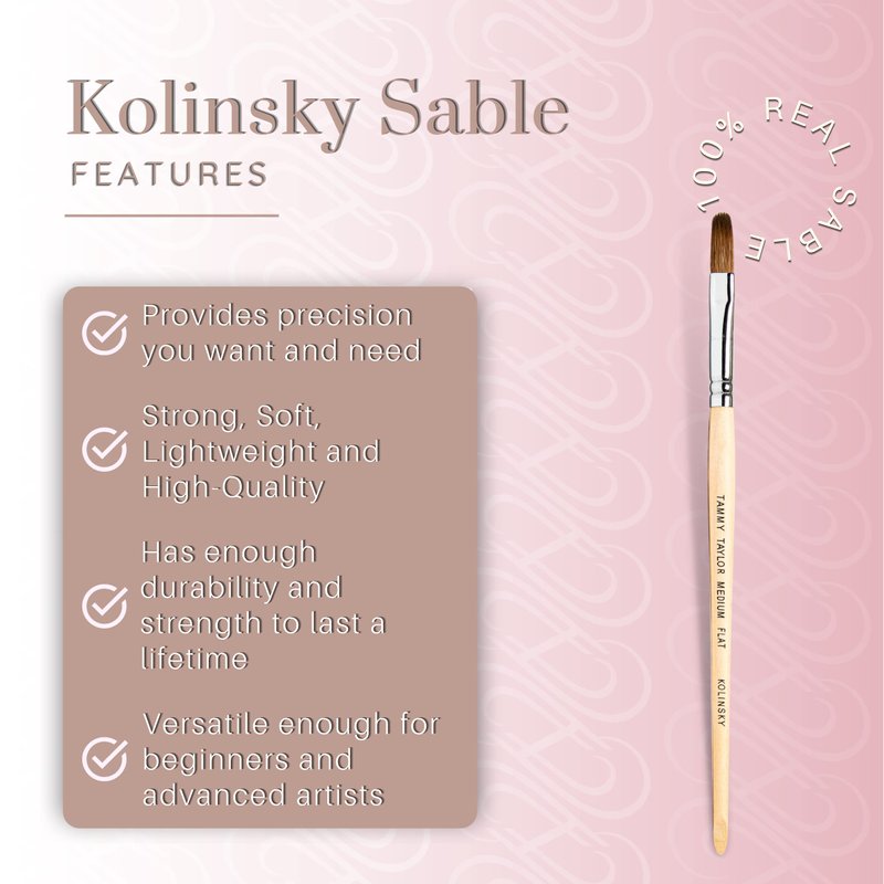 Tammy Taylor Kolinsky Sable Brush | Real Sable Hair | Professional Salon Quality Flat Oval Acrylic Nail Brush | Easy to Clean | Durable Wood Handle with Slanted Tip | Medium