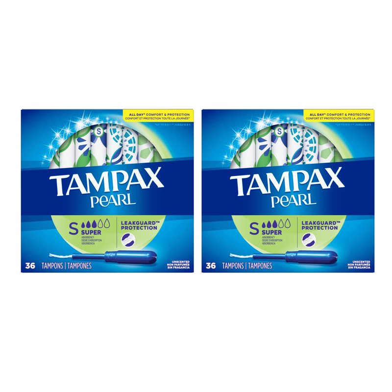 Tampax Pearl Plastic Super Absorbency, Unscented Tampons, 36 Count - Pack of 2 (72 Count Total)