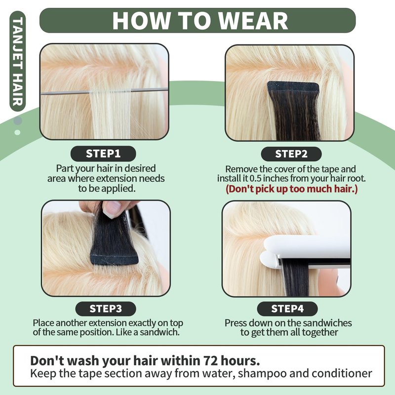 • 【Tape Hair Extensions Suggestion】 If you have thick hair, we recommend that you can get 1-2 packs. if you have thin hair, we recommend that you can get 3-4 packs. Our tape in hair extensions human hair is easy to install and remove.