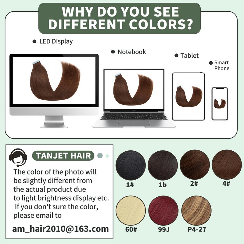 • 【About Color Difference Hair Extensions】 As different monitors, viewing angles, screen resolutions, and shades may show color differently, There may be slight color differences, If you don't know how to choose a color, you can consult us.