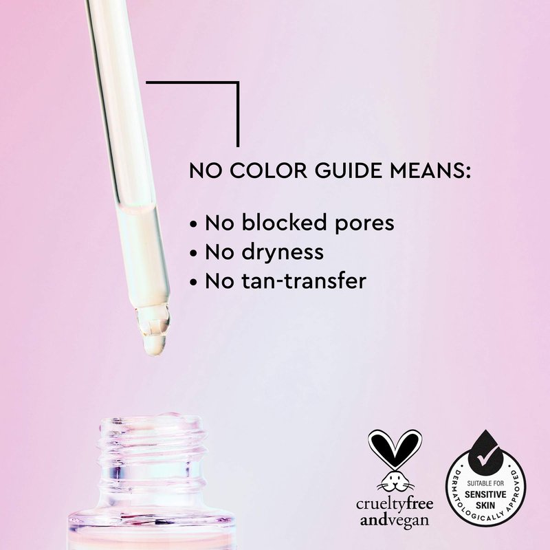 - No Color Transfer: Tanologist drops dry fast and are transparent. No color guide means no blocked pores and no more tan-transfer to your clothes or sheets