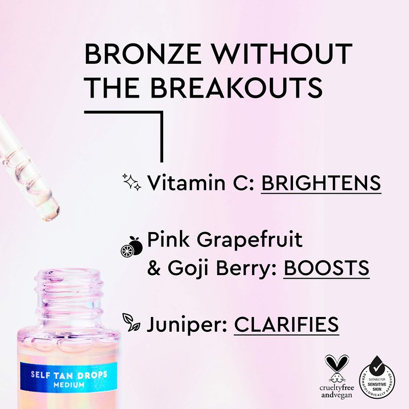 - Brighten, Soften, Hydrate: Glow like a pro. These bronzing drops will brighten, soften, and hydrate with our skin-saving trio of pink grapefruit, goji berry, and juniper
