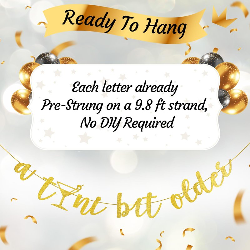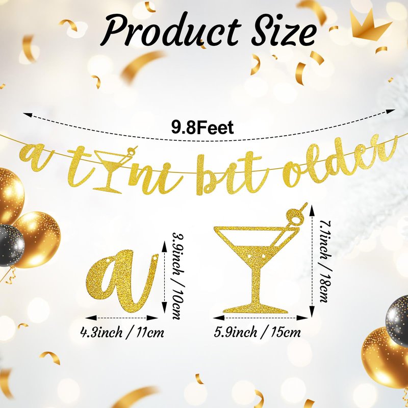 - Multi Purpose Decorations: our tini bit older martini banner is available for your party, such as martini themed party, weenies and tinis party, bachelorette party, bridal shower, martini party, tini bar party, use our [A Tini Bit Older] banner, and enjoy a joyful party with partners, creating beautiful and unforgettable memories for you and your friends