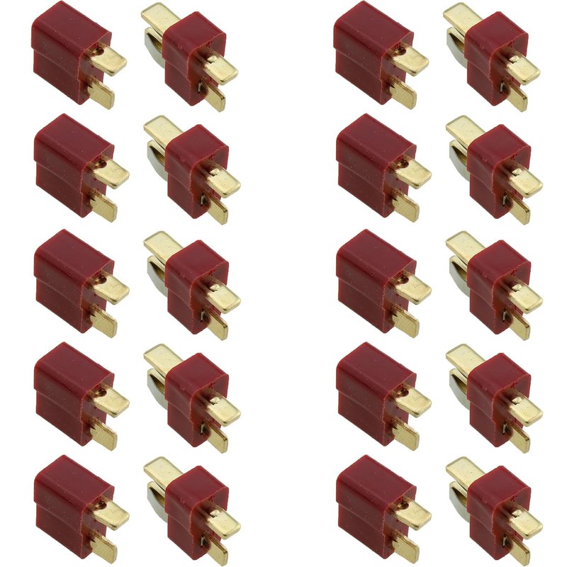 TAODAN 20PCS Red T Plug Connector Female and Male Suitable for RC Hobby Car Boat Aeroplanes Lithium Polymer Battery