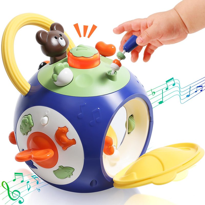 - 【17-in-1 Activity Cube】Toddler toys with music learning. Open the yellow cover, and you can find a hidden mirror. Pull-roll-rotate-press, abundant exercise finger fine motor. Baby toys for 4 6 9 12 18 months. Our Montessori toys have no choking risk and allow your baby to play alone.