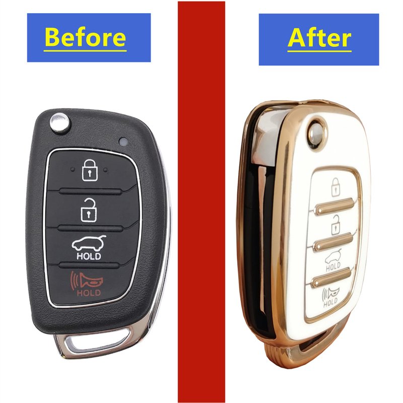 - The key fob cover Compatible with 2013-2019 Hyundai Santa Fe Sport Sonata Tucson (Suitable for Buttons with/flip/fold Buttons) (4 Button Folding Key).