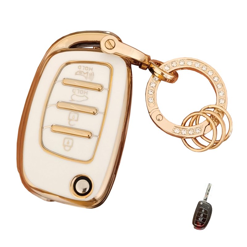 TAPAYICA for Hyundai Key Fob Cover Folding Key Fob Shell with Keychain Fit for Hyundai Santa Fe Sport Sonata Tucson (White-B)
