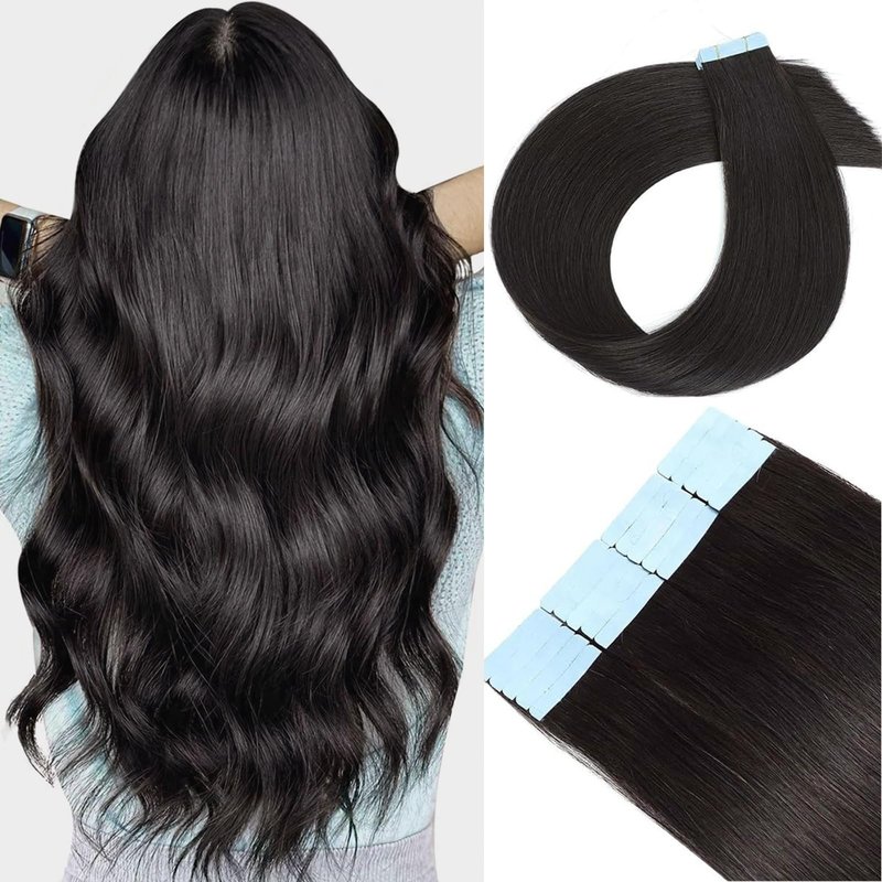Tape in Hair Extensions Human Hair 100% Remy Hair 20pcs 50g/Pack Straight Seamless Invisible Skin Weft Extensions Easy to Apply and Style (#1B Natural Black, 12 Inch)