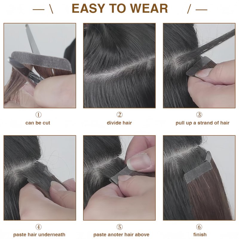 - Tape In Hair Extensions : Tape in Hair Made with Highest Quality Human Hair Remy Hair, Minimum Shedding, No Tangles, the Natural Hair can be Straighten, Curled ,Cut and Styled As Your Own Hair.Tape in Hair Extensions Seamlessly Blend with Your Natural Hair.