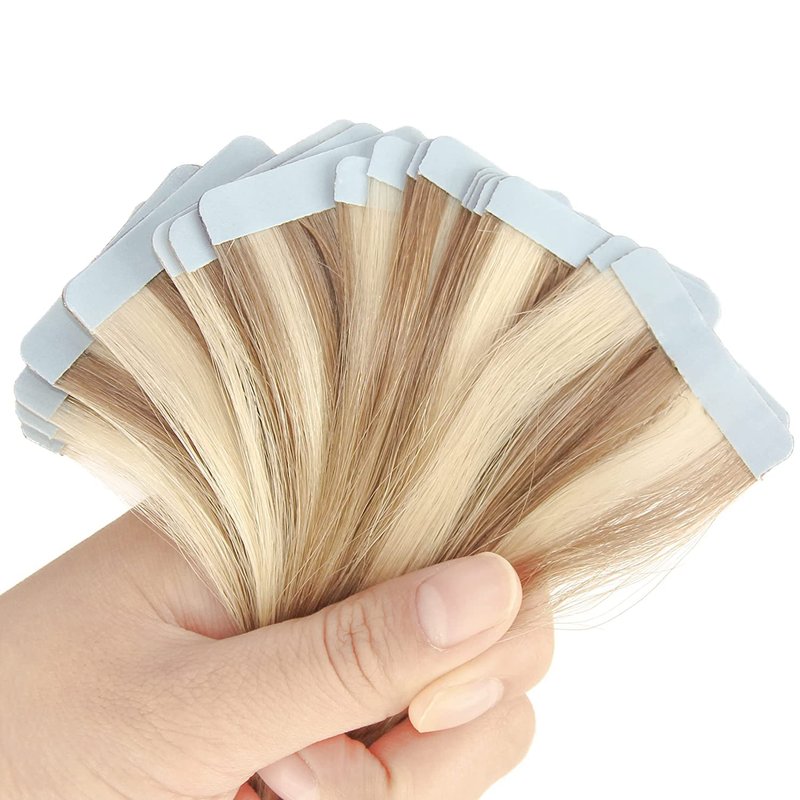 - Blonde Tape in Hair Extensions Human Hair -- Already Pre taped, With proper care and maintenance, these versatile hair extensions can be re-used up to 4 times or more, with the addition of replacement tape.Easier tape in than i tips in hair extension.