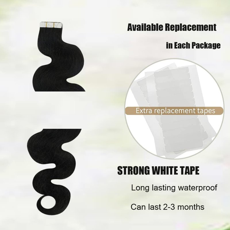 • 【Strong US White Tapes Invisible and Safe &High-Strength Tapes & Easy to Take Out】 The most significant advantages of Sunfa body wave tape in Hair Extensions are invisibility and safety. It can blend with your own hair naturally and secretly. The glue on the tape won't damage your scalp nor do harm to your hair. The tape is also replaceable,which means that you can reuse the hair extensions by changing the tape.