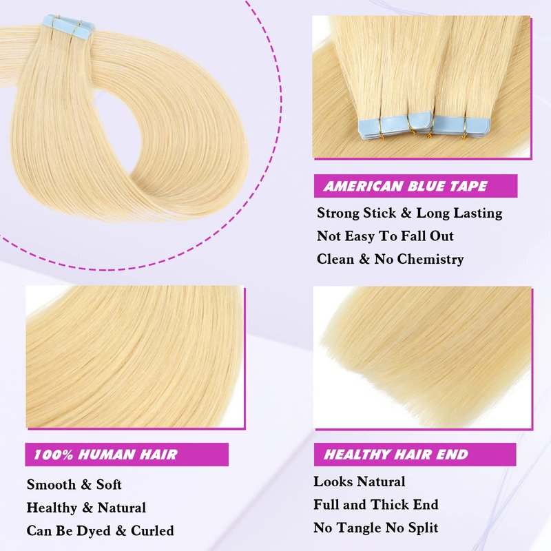 Tape in Hair Extensions Human Hair Bleach Blonde 14Inch Human Hair Extensions Tape in 40g Blonde Tape in Hair Extensions Human Hair 20Pieces/Pack Hair Extensions Real Human Hair Tape in for Black Women(14Inch,#613,40g)