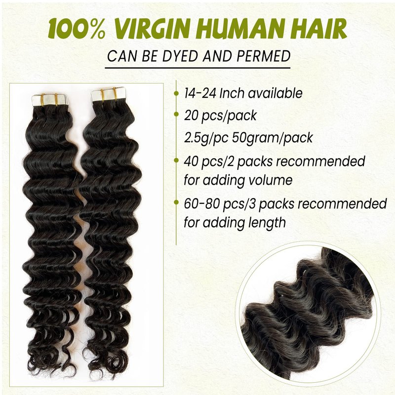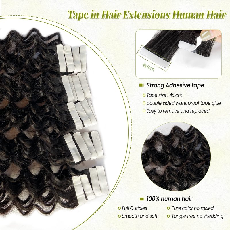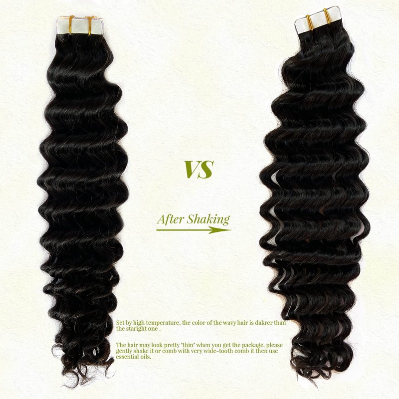- 【Deep Wave Hair Extensions Tape ins】---Natural Wave Hair Extensions Real Human HairTape ins, made of 100% 9A Premium same direction cuticle aligned virgin hair. Natural hair is more healthy soft, no dry and no split hair ends. Tape in Hair Extensions Real Human Hair Deep Wave Natural Dark Brown for Black Women. Can be washed, straightened, conditioned and restyled as your own Hair .