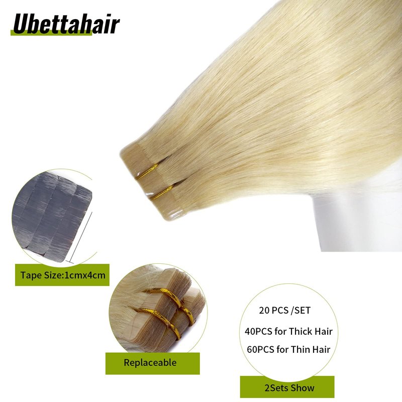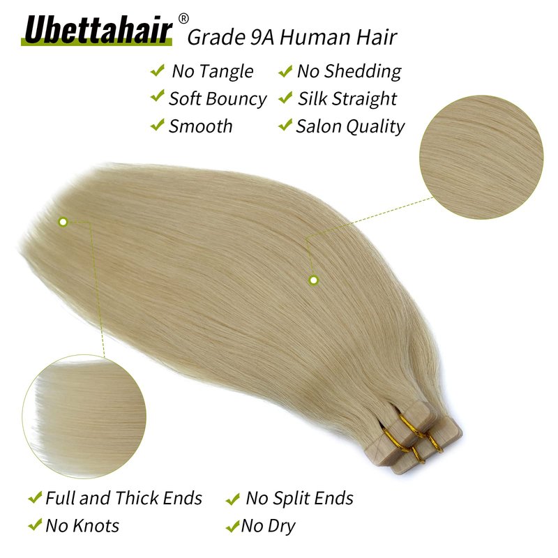 Ubetta hair extensions is of good quality with inexpensive price,the extensions can be naturally blended with your own hair and can be washed,blow dried, flat ironed,and/or curled using hot tools,just like your own hair, No Shedding,No Tangles,No Smell,Silky Soft.If you want to add length or volume to your hair,tape in human hair extension is a perfect choice.