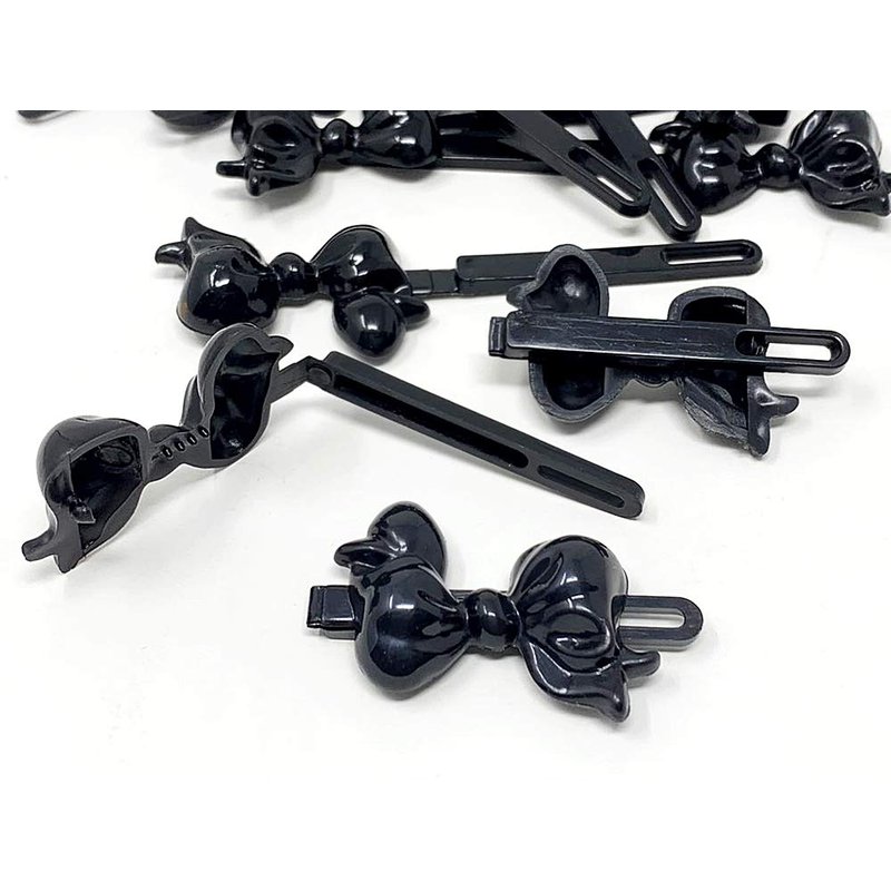 Tara Girls Super Cute Self Hinge Plastic Mulit Design Hair Barrettes Selection. 20 pc Bow shape (black).