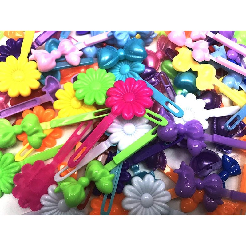 Tara Girls Super Cute Self Hinge Plastic Mulit Design Hair Barrettes Selection. 20pc yellowmix bow shape.