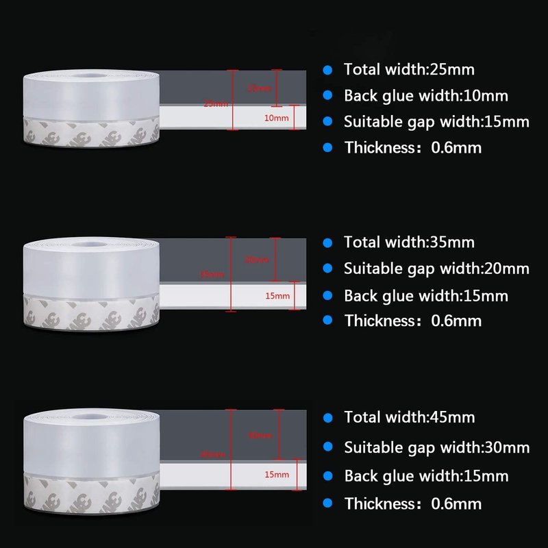 - 【Width Selection】The total length of the sealing strip is 16 feet, thickness of 0.02 inch and can be cut to your needs. A gap of 0-15mm is recommended to select a 25mm width seal; a 0-20mm gap is recommended to select a 35mm width seal; a 0-30mm gap is recommended to select a 45mm width seal.