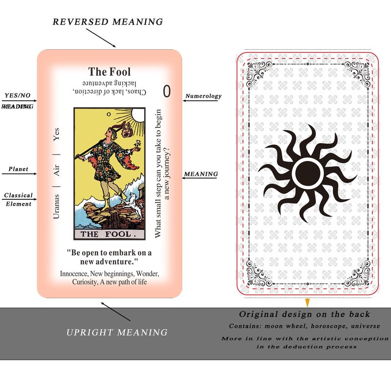 - 【Tarot Deck】This tarot cards with meanings on them, keywords, planets, zodiac, elements, yes or no, and Hebrew letters, making it very suitable for beginners and advanced readers.