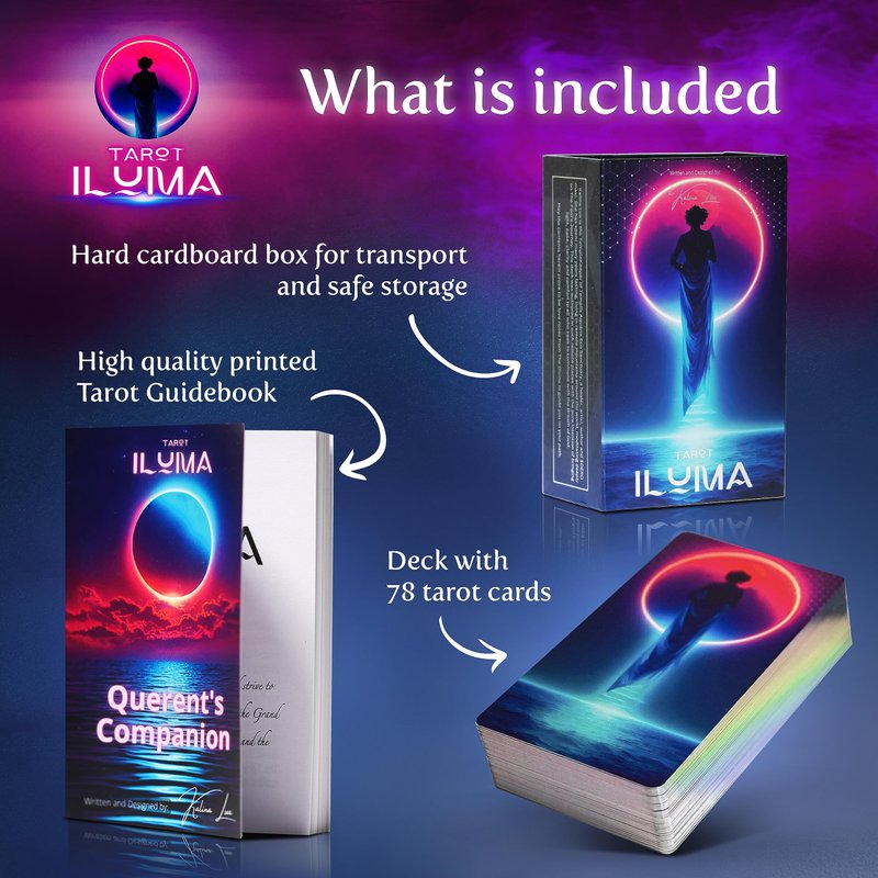 - 📖 Comprehensive Guidebook: Each deck comes with an insightful guidebook, written by me, Kalina Lux, to help you navigate the cards and their meanings. Dive into the symbolism, archetypes, and narratives that make Tarot ILUMA a transformative tool for personal growth.