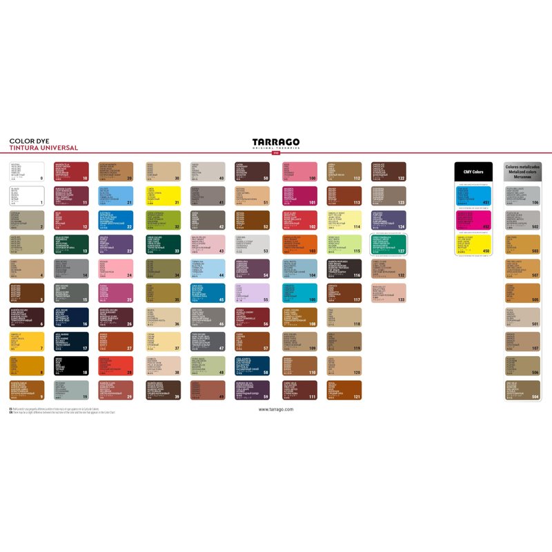 Tarrago Shoe Cream is a soft cream made from natural waxes, including carnauba wax and beeswax, that nourishes, maintains, shines and enhances color. It is enriched with 18% carnauba wax and beeswax of all waxes. The carnauba wax is also known as “the queen of waxes”, because of providing a lasting shine and ensuring waterproof protection. Thanks to its total wax and beeswax content, it also provides nutrition and flexibility to leather. Due to its content in high quality pigments, the shoe cream provides great coverage. 50 ml / 1,69 fl.oz glass jar. Thanks to its more than 90 available colors, including metallic and pearly colors, get the color that most closely resembles to your accessories or leather shoes. It is suitable for shoes and accessories.