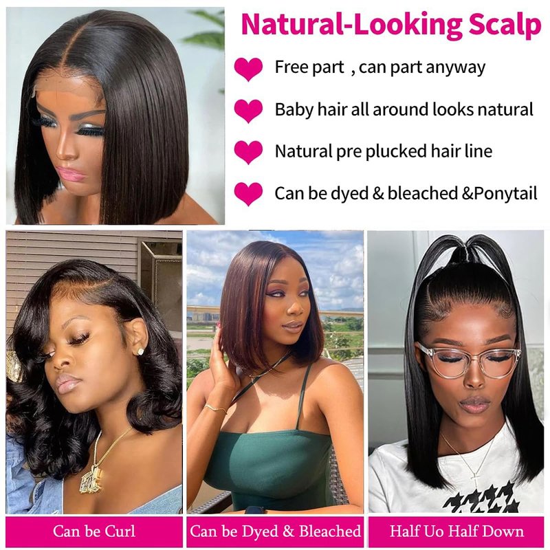 - Straight Bob Wig Human Hair Pre Plucked: Transparent bob lace front wigs human hair, pre plucked natural hairline with baby hair around, soft & durable. Can be dyed, permed, bleached, highlight, curled or styled as your own hair. It is suitable to wear in any occasions.