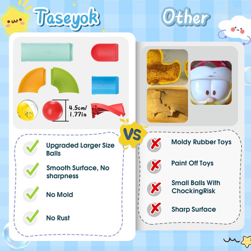 taseyok Toddler Bath Toys, Baby Bathtub Toys Ball Slide Track, DIY Shower Toys with Suction Cups, Christmas Birthday Gift for Kids Bath Fun for Ages 3 4 5 6 7