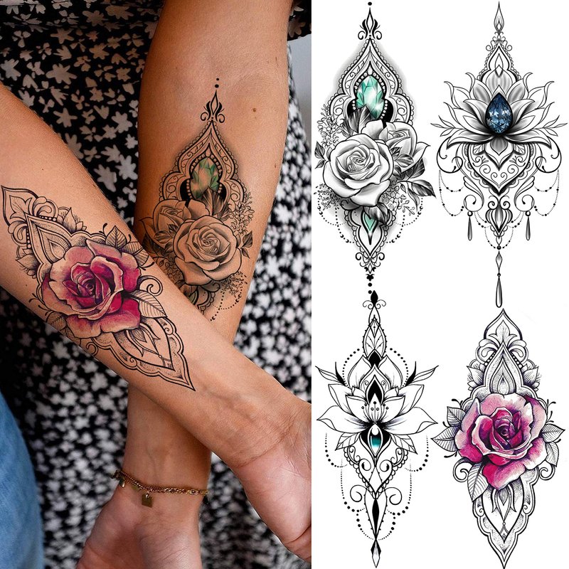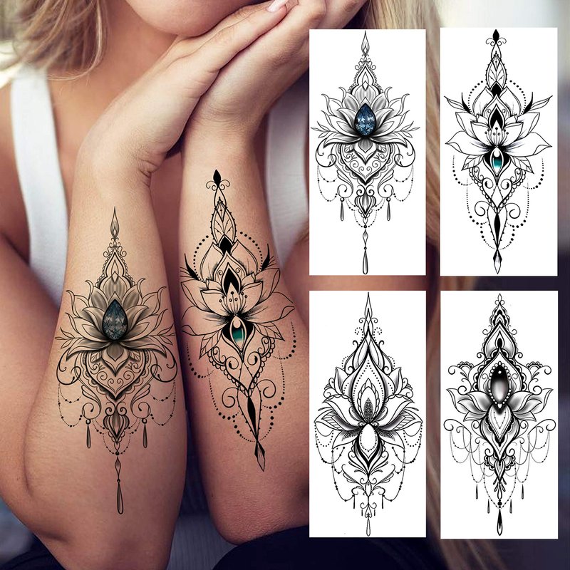 - 🐳[32 Sheets in One Package] - Original Brand of TASROI Temporary Tattoos For Women and Adults. There Are 32 Sheets High Quallity Large Totem Indian Tribal Temporary Tattoo Sticker In Each Package, Black Butterfly Tattoos Temporary Fake Jewelry Jewels Lace Bracelets Sea Horse Dolphin Chains Indian Tribal Lion Lotus Mandala Flower God Moon Feather Heart Seahorse Diamond Crystal Gems Tattoo Sets Foils Makeup Temporary Tattoos For Girls.