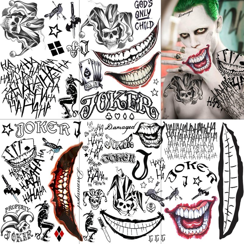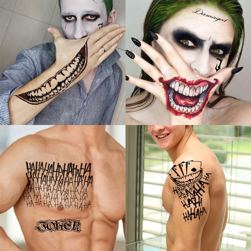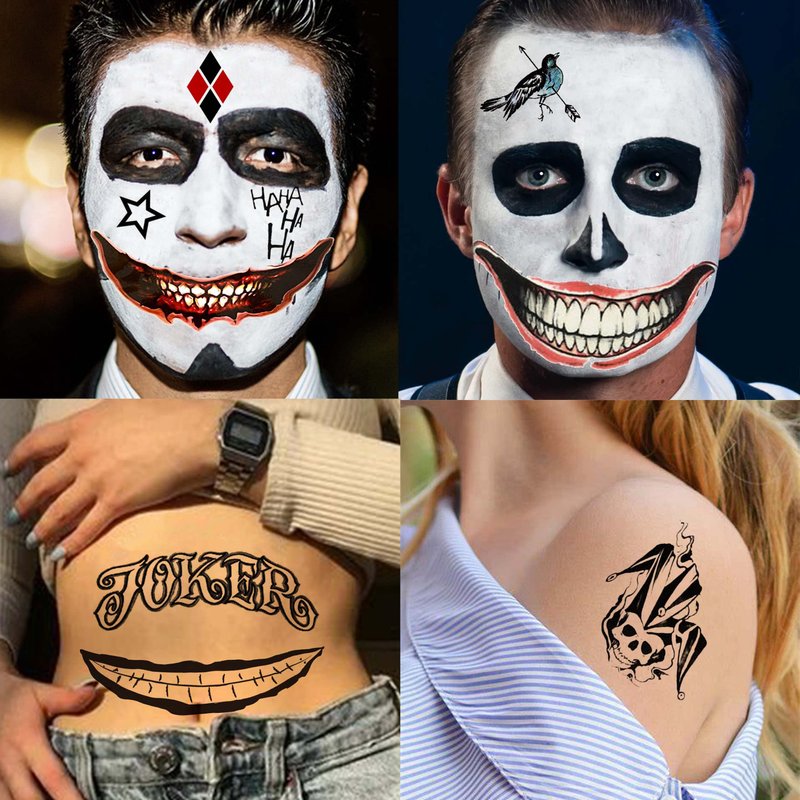 - 🐳[5 Sheets Joker Temporary Tattoos For Men And Women in One Package] - Original Brand of TASROI 3D Chucky Halloween Temporary Tattoos For Women Men and Adults. Joker Tattoos Temporary Gothic Prison Inmate Prisoner Rapper Joker Tattoos HQ Tattoos Stickers HQ Costume Scary Smile Face Party Accessories Etc.