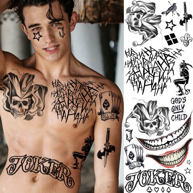 - 🐳[Realistic Joker Tattoos For Adults Men Women] - 5 Sheets 8.2"x5.9" Hot Popular Large Temporary Tattoos For Teens Kids Boys Girls Children Son Daughter Body Art Painting Drawings Sketch Temp Tattos Can Use For Table, Chair, Punk, Halloween Tattoos, Bottle, Tumblers Cups, Home Decor, Temporal Tattoos, Stationery, Fake Jewelry, Rock, Day of the Dead, Styling Tools, Party Favor Supplies, Tattoo Supplies, illustration.