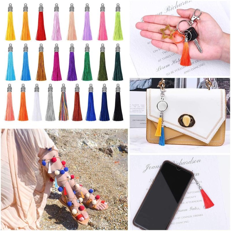 - Variety Colors - These tassels for jewelry making and crafts are in 25 different bright colors, 4 pieces for each color. Great selection of keychain charms colors, and according to your preferences and needs, different items and scenes can be matched
