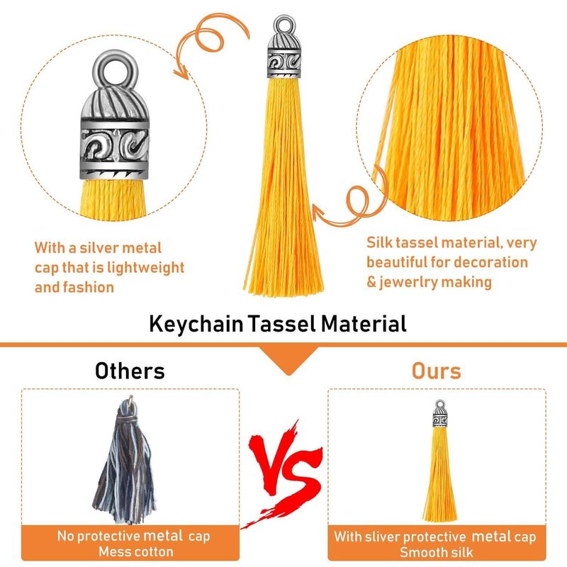 - Premium Material - Our keychain tassels are made of high-quality silky thread, soft and comfortable. The tassels for crafts fixed by a classical metal cap, beautiful and practical. Perfectly to attach as jewelry making accessories, tassel charms pendants craft projects
