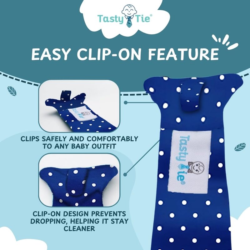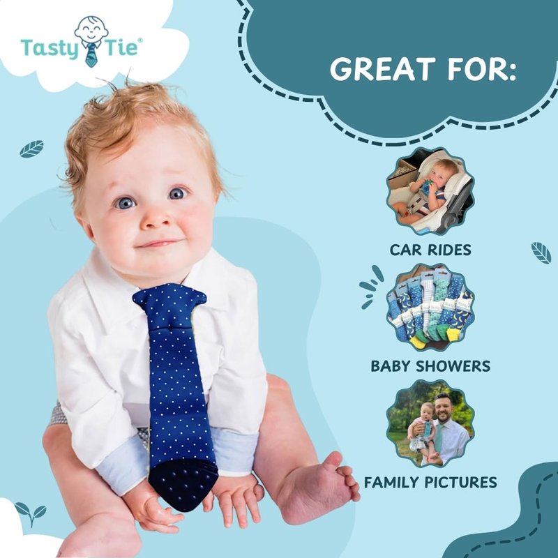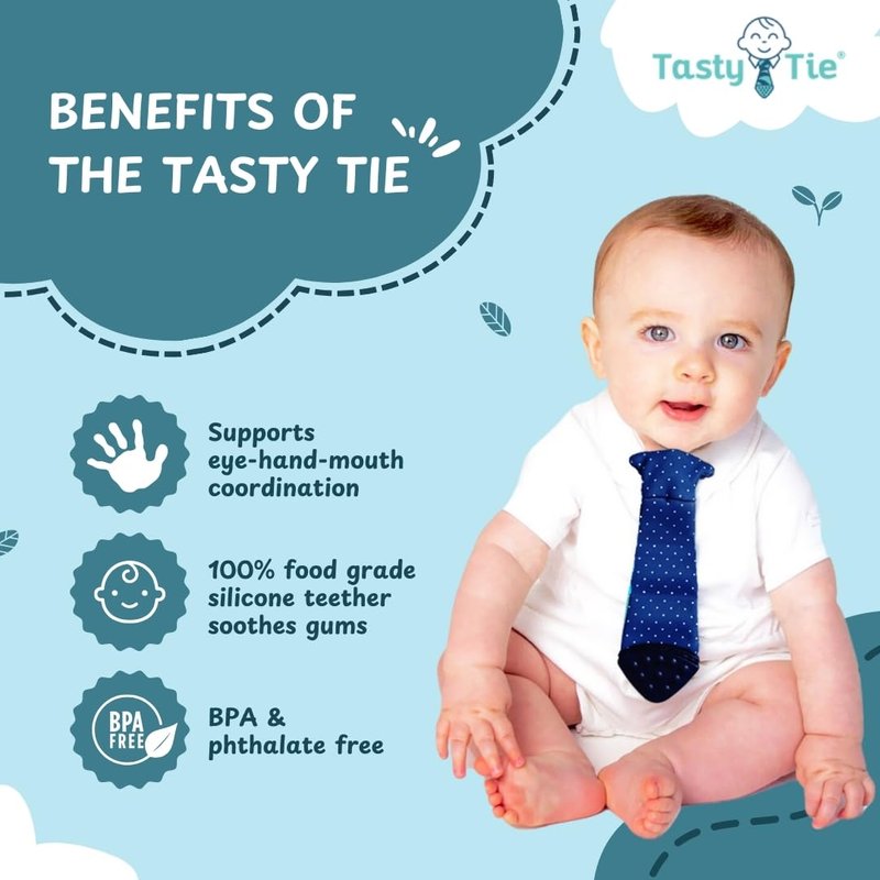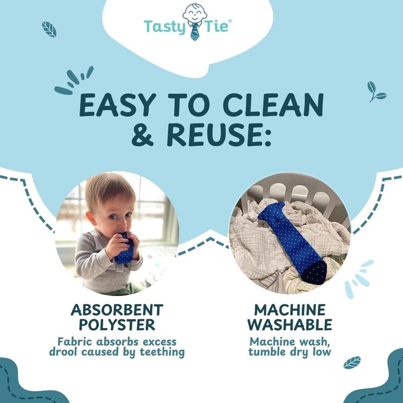 - ABSORBS DROOL: When babies teeth, they drool which makes these machine-washable teethers a great option for your kids. Don't worry about ruining your child's holiday outfit or wedding attire. Clip on a Tasty Tie and let them chew! You can throw them in the wash later.