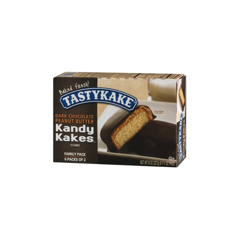 Tastykake Kandy Kakes Dark Chocolate Peanut Butter Snack Cakes, Family Pack of 12 Cakes