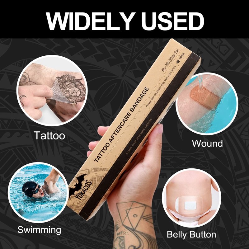 - 【Protect Tattoo Colors, Lines, And Clarity】Keeping tattoos clean, non-polluting, and shielding the skin from further clothes' friction, YOKACOS’s new tattoo dressing not only perfectly avoids indistinct lines and color due to the external environment, but also locks in moisture and supports the ink set better during the healing process. You get more vibrant colors and darker darks.