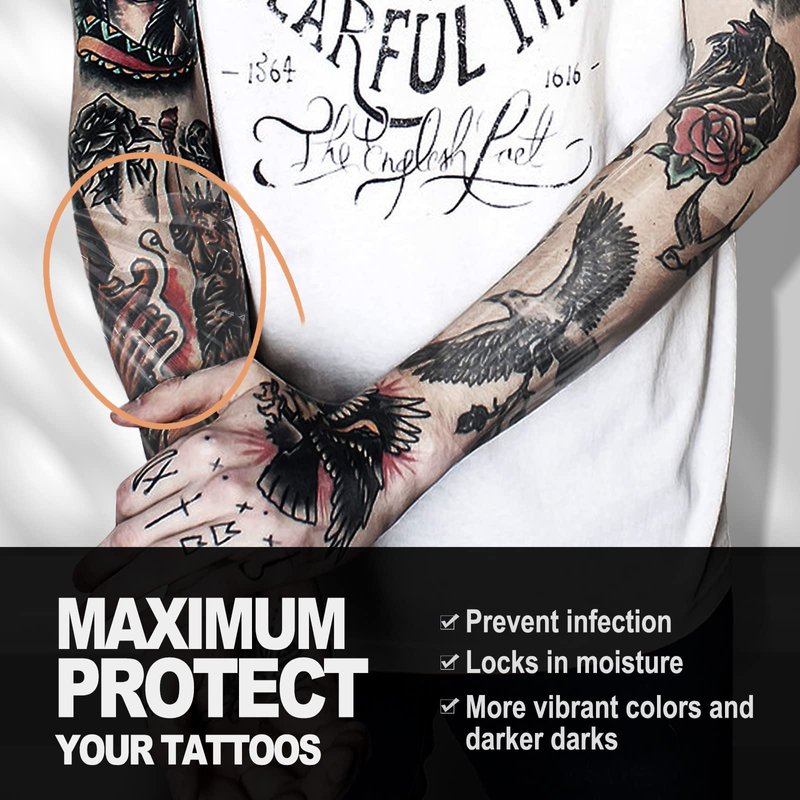 - 【Waterproof For Active Lifestyles】With a strong adhesion on the skin and stretchable, the tattoo healing wrap won't be torn off with your movements. Your precious tattoo is worth being better protected under a workout, shower, or water activities.