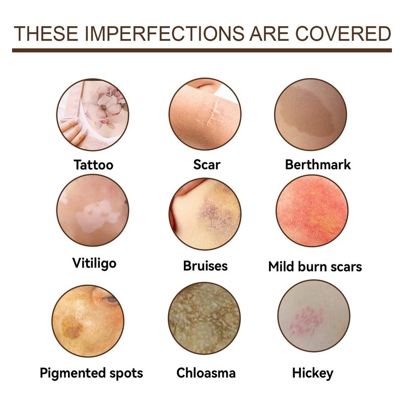 • 【TATTOO CONCEALER】It's normal for tattoo cover up to be slightly sticky when applied. Allow 5-8 minutes to dry after applying evenly. You can apply makeup spray to extend the coverage time.
