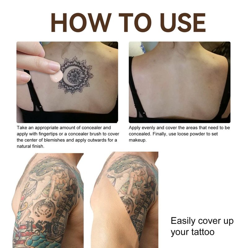 • 【TATTOO COVER UP】Our tattoo concealer is a fine cream that doesn't clump. It's waterproof, so you can cover defects completely and don't have to worry about melting and fading. With it, you can attend any important venue you want.