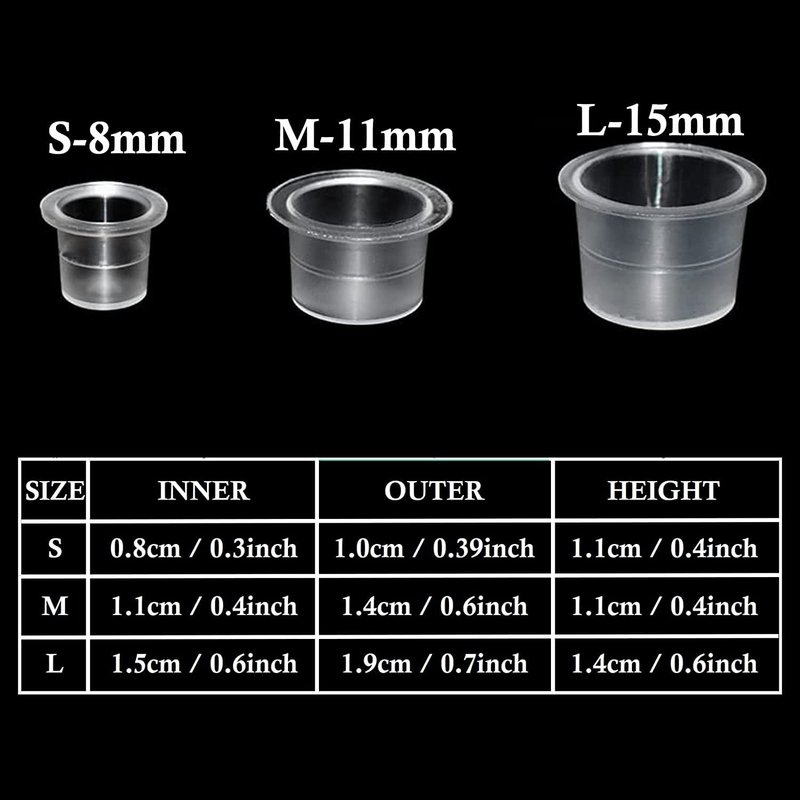 - 【PACKAGE】 The package contains 300pcs mixed sizes tattoo ink cups, 100pcs of small ink caps, 100pcs medium size ink caps, and 100pcs of large size ink cups.
