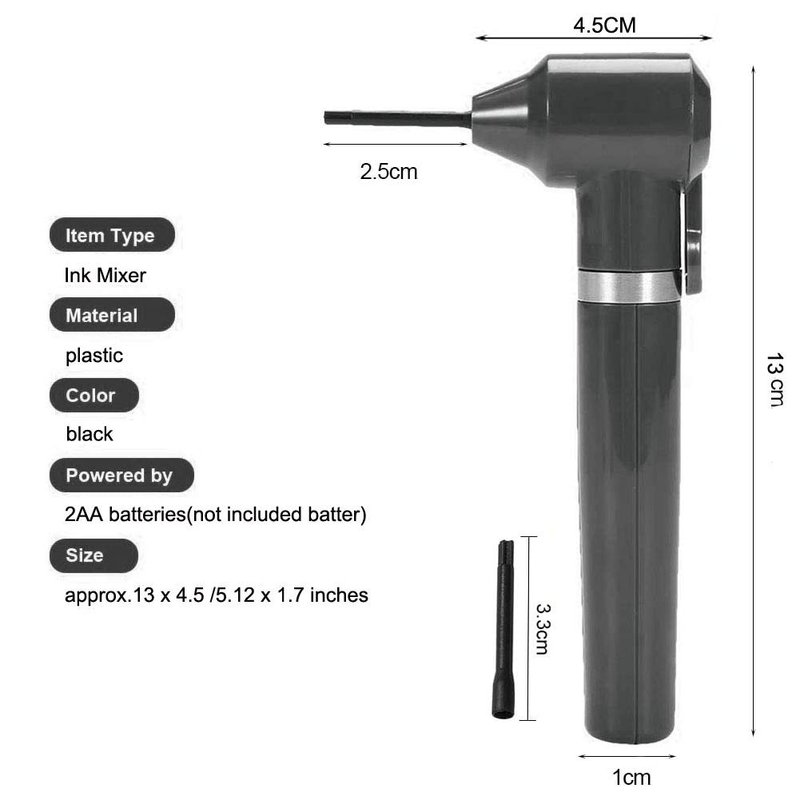 - 5.POWER - Our tattoo pigment mixer machine 2 AA 1.5V batteries are need. (not included in the package).And there is a strip bar control button on the head of machine. Single button easy operation.Lightweight and portable, small size for easy carry, convenient and practical to use.