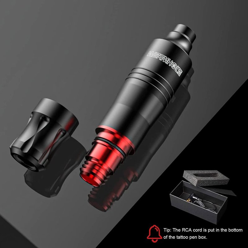 - ☀ROTARY TATTOO PEN: The tattoo pen with RCA interface, which can meet all your tattoo needs. The tattoo machine pen is made from premium aluminum alloy, has exquisite workmanship, features a powerful motor and an advanced gear system, continuous operation not hot, Low noise. Length of the stroke: 3.5mm. We suggest using 6-8V to run this tattoo pen, which will be more efficient. This tattoo kit is a good gift for tattoo artists and beginners can also be bought as a birthday or anniversary gift.