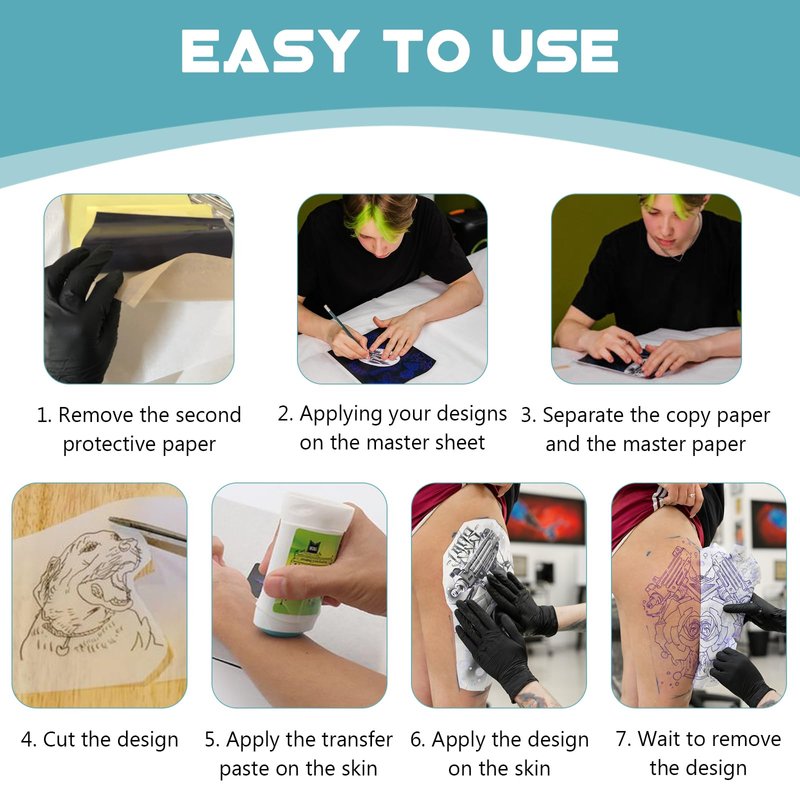 - TATTOO TRANSFER PAPER - 20pcs A4 size 4 layers transfer paper for tattooing. This tattoo stencil paper is made of high-quality dyes and wax paper, which is perfect to use for tattoo practice or work.