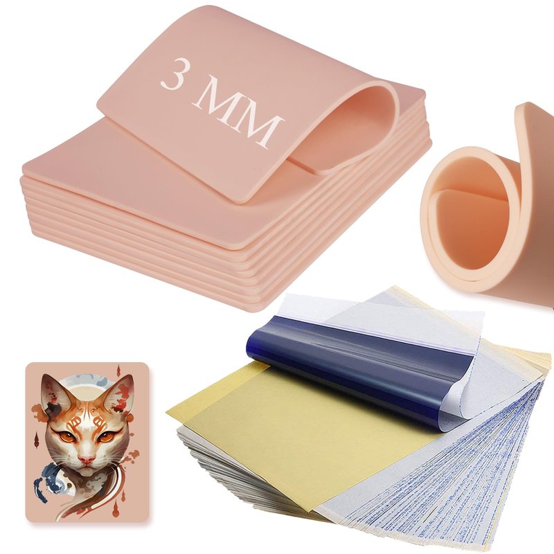 - TATTOO PRACTICE SKIN - 10pcs 5.5*7.5 inch thick tattoo practice skin. 3MM tattoo fake skins are made of premium synthetic flexible silicone material, reusable, and available on both sides.