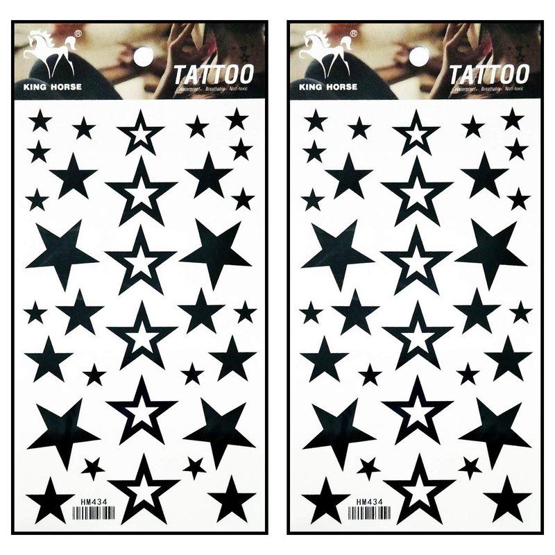 Tattoos 2 Sheets Black Stars Temporary Tattoos Stickers Fake Body Arm Chest Shoulder Tattoos for Teens Men Women