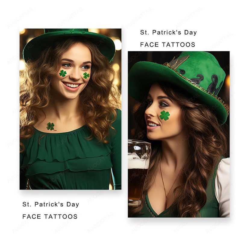 - Package includes 10 sheets of clover, four-leaf clover St. Patrick's Day themed tattoo sticker set for adults and girls, in a variety of styles to meet your different decorative needs