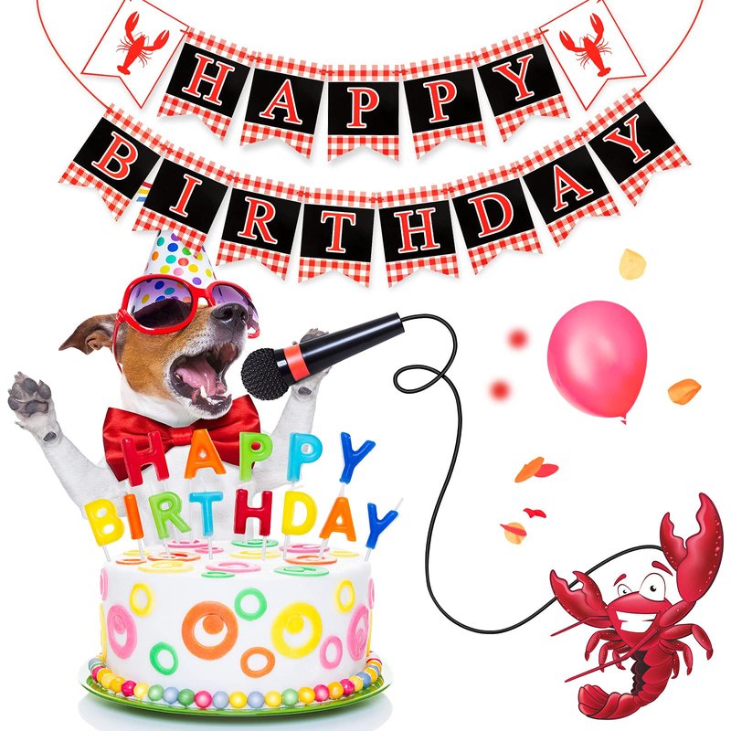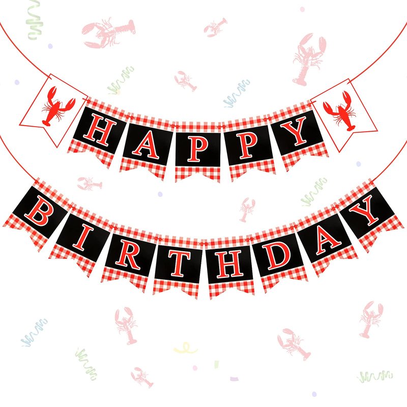 Tatuo 2 Pcs Crawfish Happy Birthday Party Banner Crawfish Boil Party Supplies Lobster Theme Birthday Party Decorations for Kids Adults Summer Birthday Party Supplies