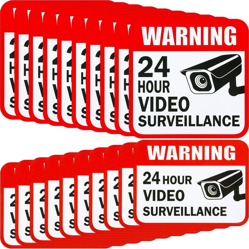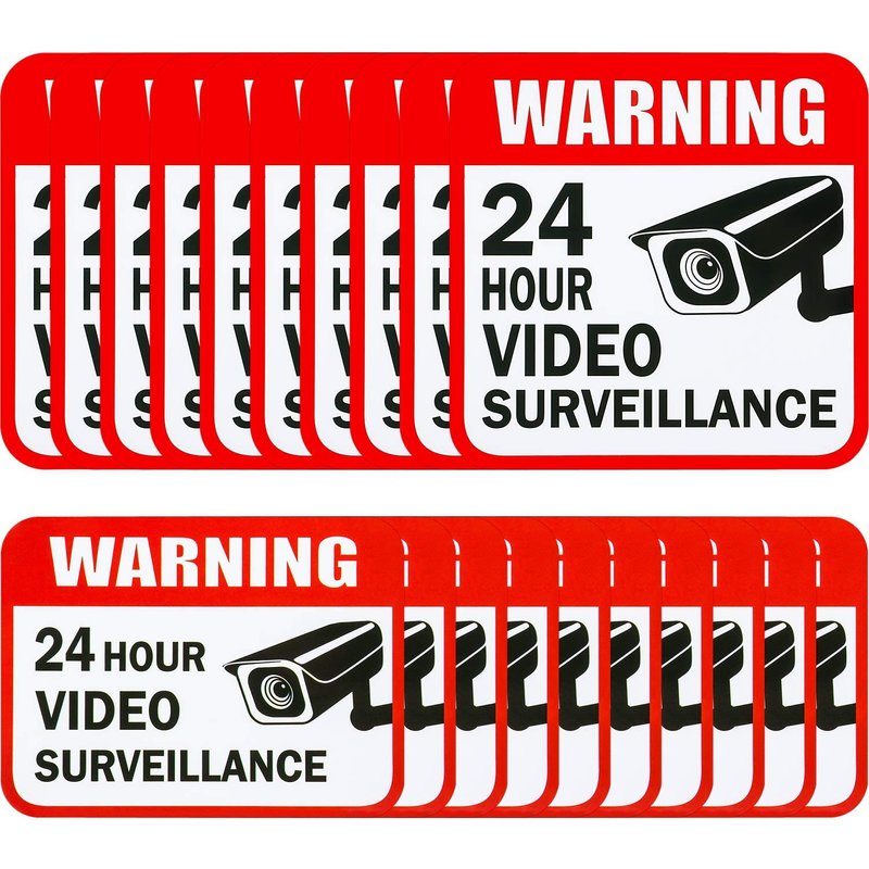 - Video surveillance stickers: 20 pieces 24-hour video surveillance stickers in 2 different sizes, enough for you to stick on a zone, provide you with property safety and physical safety